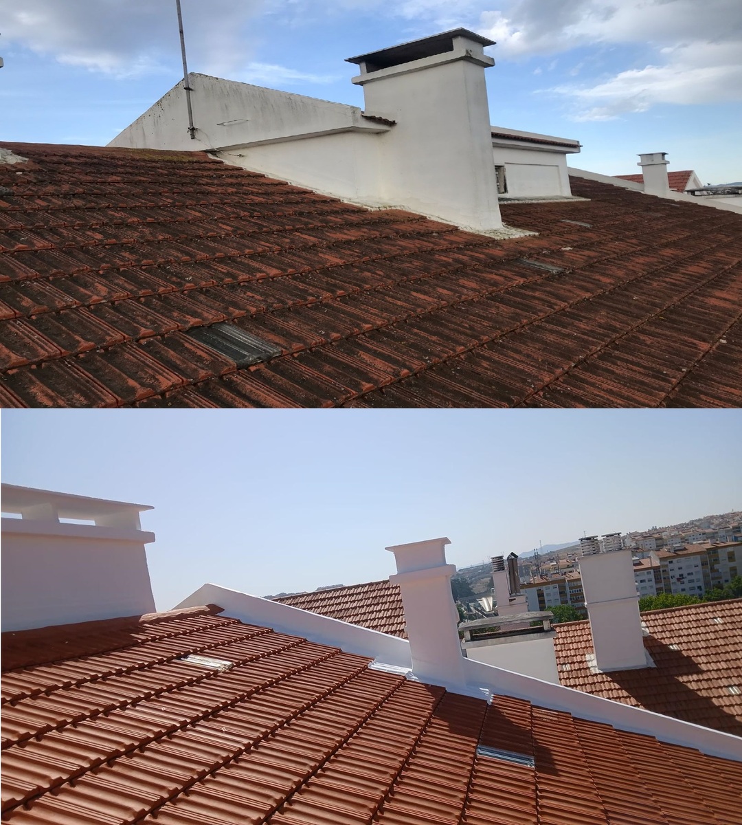 Higienização Profissional: Removemos musgos, líquenes e toda a sujidade, devolvendo o aspecto novo ao seu telhado e prevenindo danos.